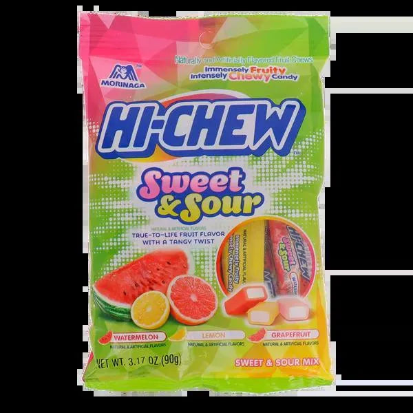 "Hi-Chew Sweet & Sour" refers to a specific variant of the Hi-Chew candy line, which is known for its chewy texture and fruit-flavored offerings. This particular version combines sweet and sour tastes to create a unique, mouthwatering experience. It likely includes flavors designed to contrast and complement each other, such as lemon with raspberry or lime with orange, providing a tangy kick alongside the candy's inherent sweetness. This blend of flavors is aimed at consumers seeking a candy that delivers both the classic sweetness of Hi-Chew and an added sour zest, encapsulating a full spectrum of flavors in each bite.