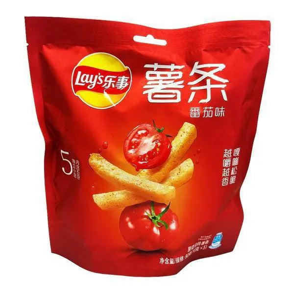 Lay's French Fries Tomato are a snack offering from Lay's, featuring a crispy, fry-shaped potato snack infused with a tangy tomato flavoring. Designed to mimic the taste and texture of actual French fries paired with a tomato-based seasoning, they provide a convenient and savory snacking option for those looking to enjoy the essence of French fries in a ready-to-eat form. These snacks combine the classic potato base of Lay's products with a zesty tomato twist, catering to fans of both potatoes and tomato-flavored treats.